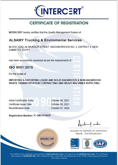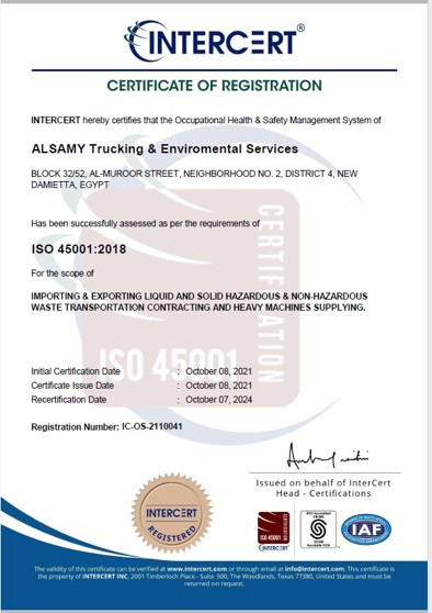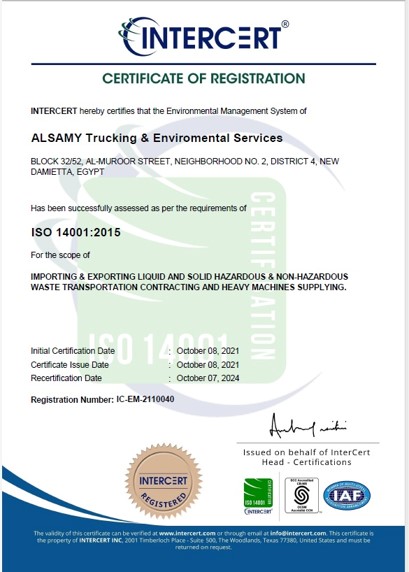 Obtained environmental approval (c) No 667. On 30/3/2016. From the Environmental Affairs Agency and its expansions by the No. (3011) On 30/3/2020, and specific medical approval (B) No. (1158) on 31/3/2023to transport hazardous medical waste, chopping and sterilization products, and incinerator ash from all over the Republic, and its expansions by the No. 2216 on 7/16/2023. The Company work in The field of transporting solid, liquid, and organic and inorganic wastes, both hazardous and non-hazardous, all over the country according to these agreements The company owns trained labor in all disciplines in this business, it also has the equipment that helps it carry out its tasks efficiently and it has enough experience to be a pioneer in the field.